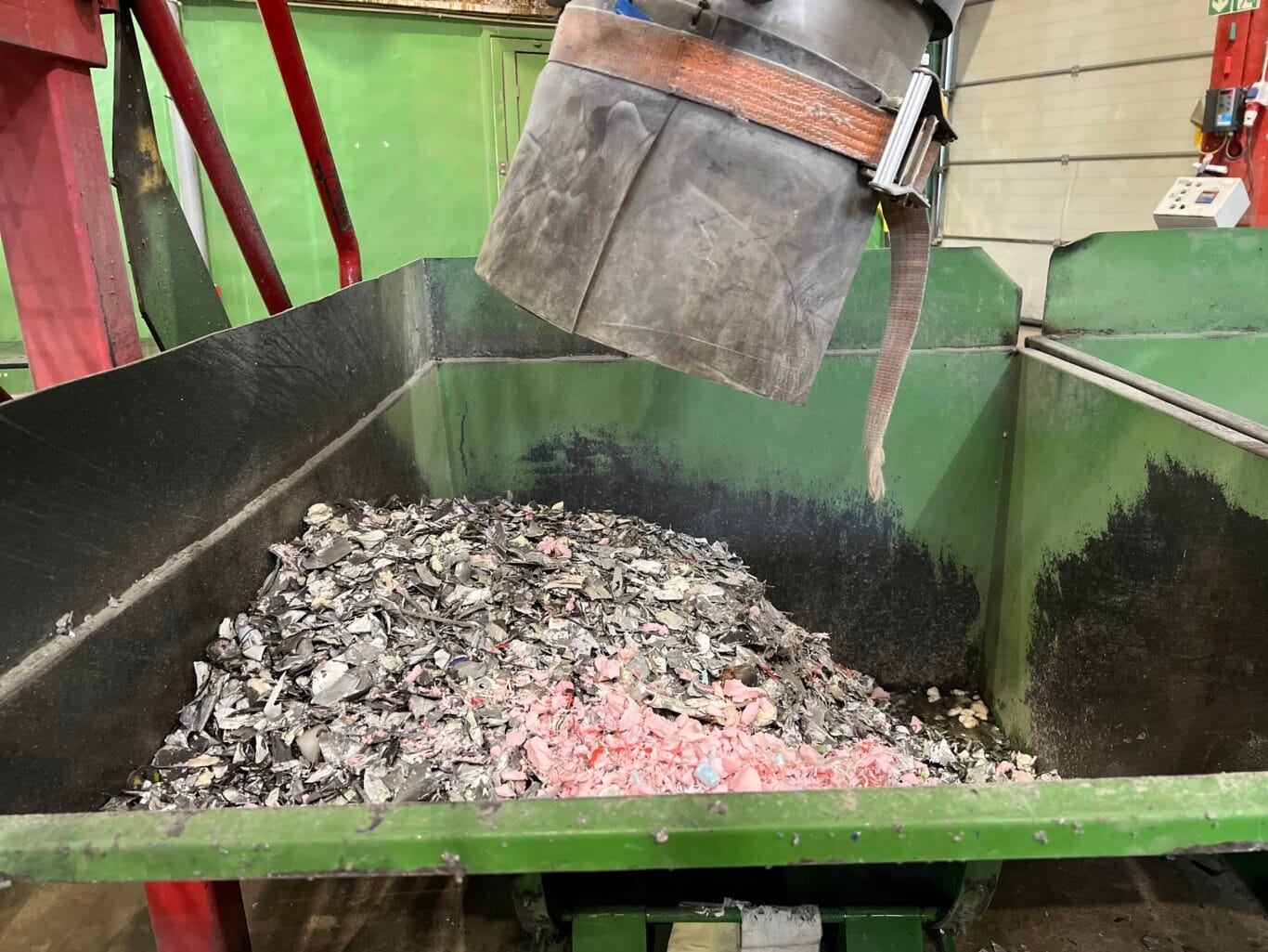Järnet sorteras ut med hjälp av magneter, och förvaras sedan i containrar innan de skickas vidare till materialåtervinning. Hos tillverkare av metallpulver smälts järnet ner till råpulver, där största delen går till pulvermetallurgi (=pressning och sintring av komponenter) som sedan används främst till bilindustrin.
